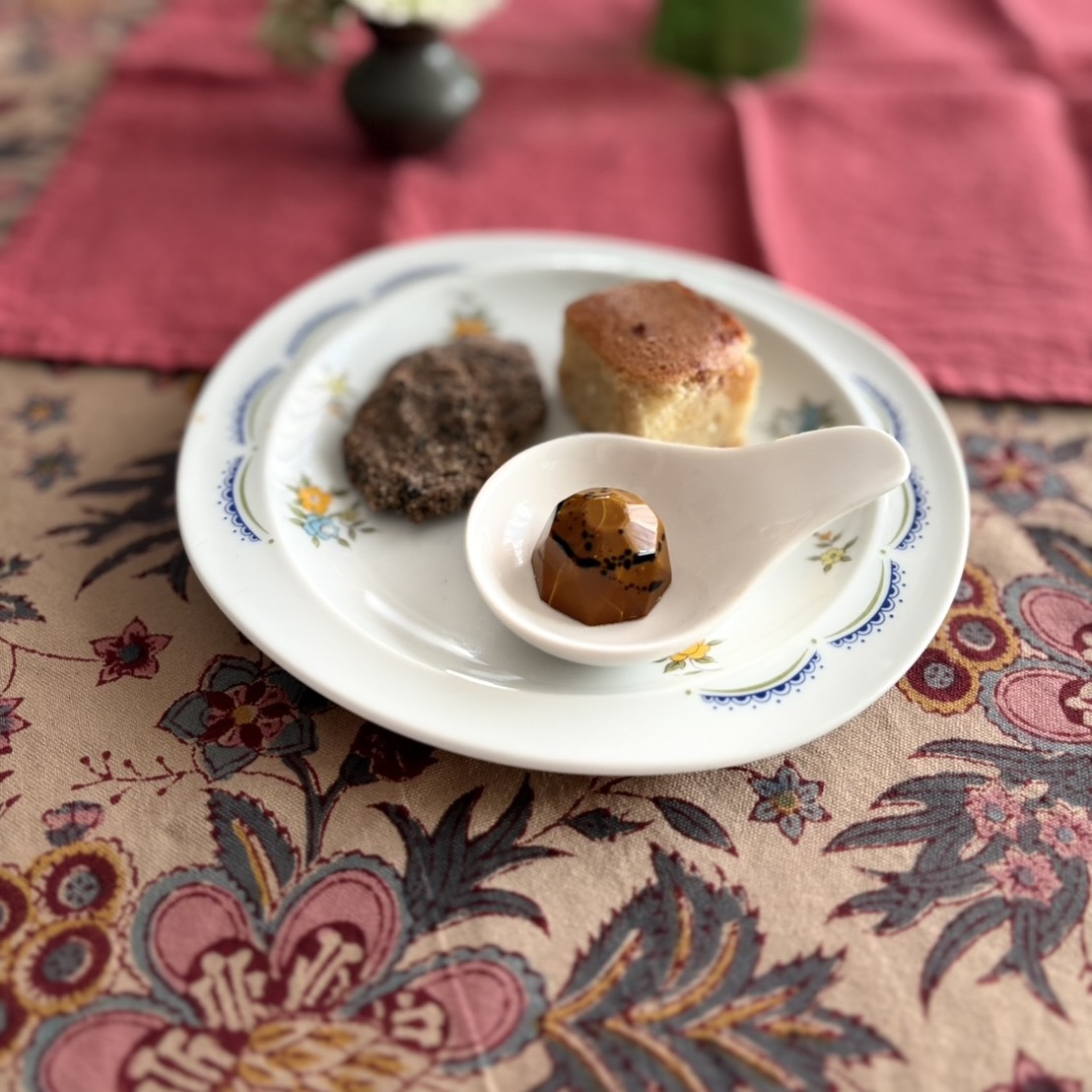今回は嬬恋村にて活動をされている 空とぶスパイス @currytomoko さんのスパイスショコラとコラボプレートです。 空とぶスパイスさんからご提供いただくチョコレートは、胡桃キャラメルチリ。ネーミングにもあるように、ビターチョコレートとキャラメリゼした長野県産胡桃の奥にカシミールチリの上品な辛味と旨味が広がります。